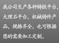 自從05年和我公司合作了感覺(jué)很好,我公司生產(chǎn)的劃線平臺(tái),焊接平臺(tái),T型槽平臺(tái),鉚焊平臺(tái),電機(jī)試驗(yàn)平臺(tái)等系列產(chǎn)品,是用于工件、設(shè)備檢測(cè)、劃線、裝配、焊接、組裝、鉚焊的平面基準(zhǔn)量具。